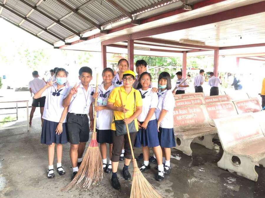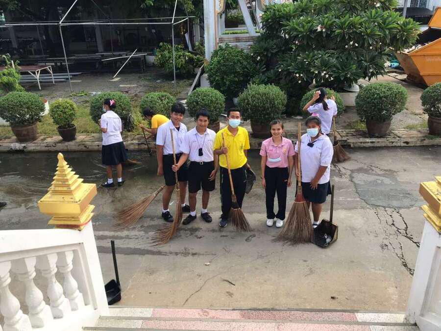 นักเรียนจิตอาสาทำความสะอาดวัดมูลจินดาราม