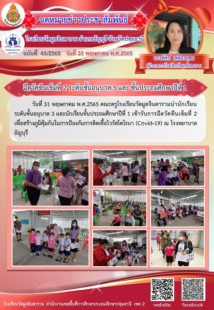 ฉีดวัคซีนเข็มที่ 2 ระดับชั้นอนุบาล 3 และชั้นประถมศึกษาปีที่ 1