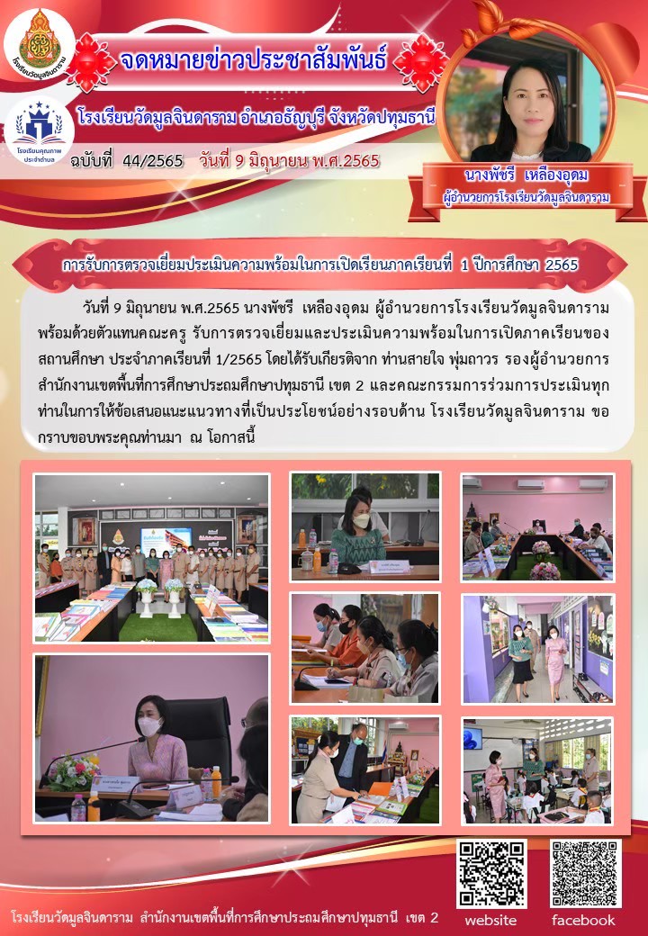 การรับการตรวจเยี่ยมความพร้อมในการเปิดเรียนภาคเรียนที่ 1 ปีการศึกษา 2565