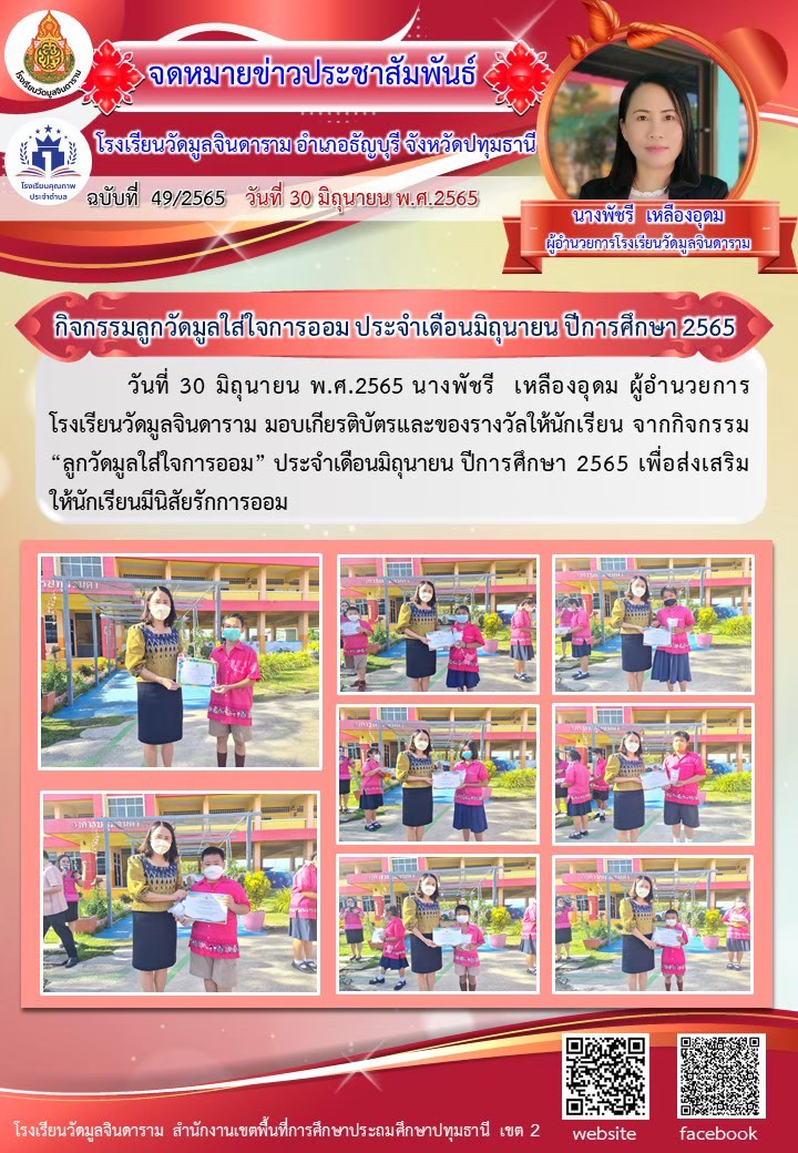 กิจกรรมลูกวัดมูลใส่ใจการออม ประจำเดือนมิถุนายน ปีการศึกษา 2565