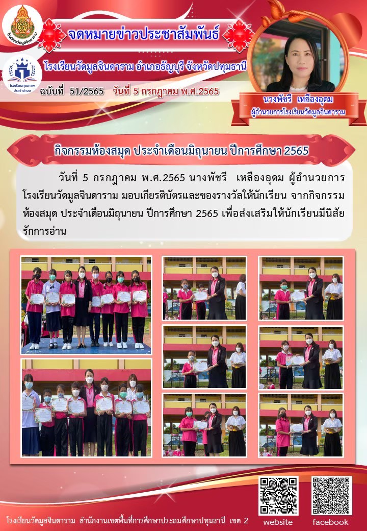 กิจกรรมห้องสมุด ประจำเดือนมิถุนายน ปีการศึกษา 2565