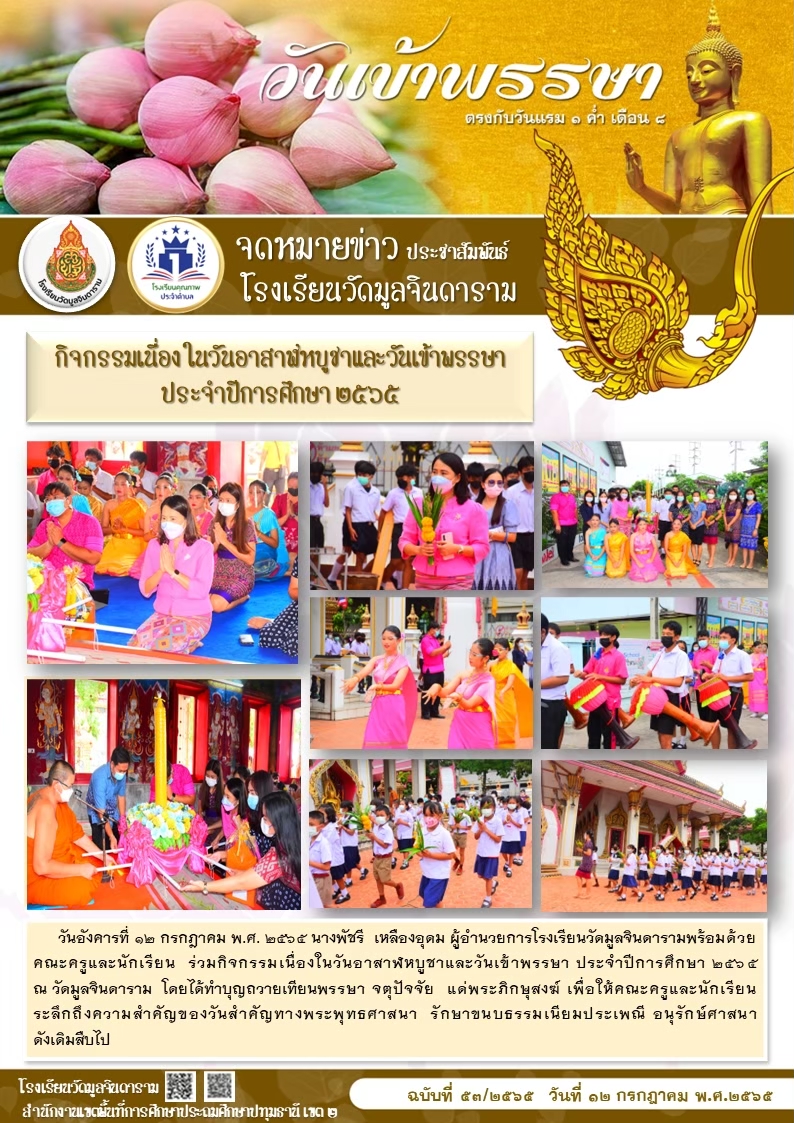 กิจกรรมเนื่องในวันอาสาฬหบูชาและวันเข้าพรรษา ประจำปีการศึกษา 2565