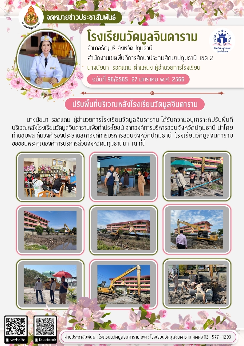 ปรับพื้นที่บริเวณหลังโรงเรียนวัดมูลจินดาราม