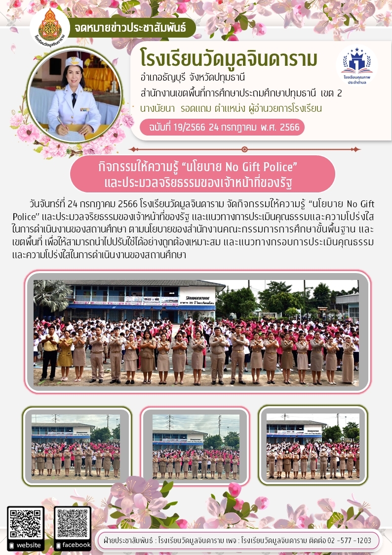 กิจกรรมให้ความรู้ "นโยบาย Nogift Police" และประมวลจริยธรรมของเจ้าหน้าที่ของรัฐ