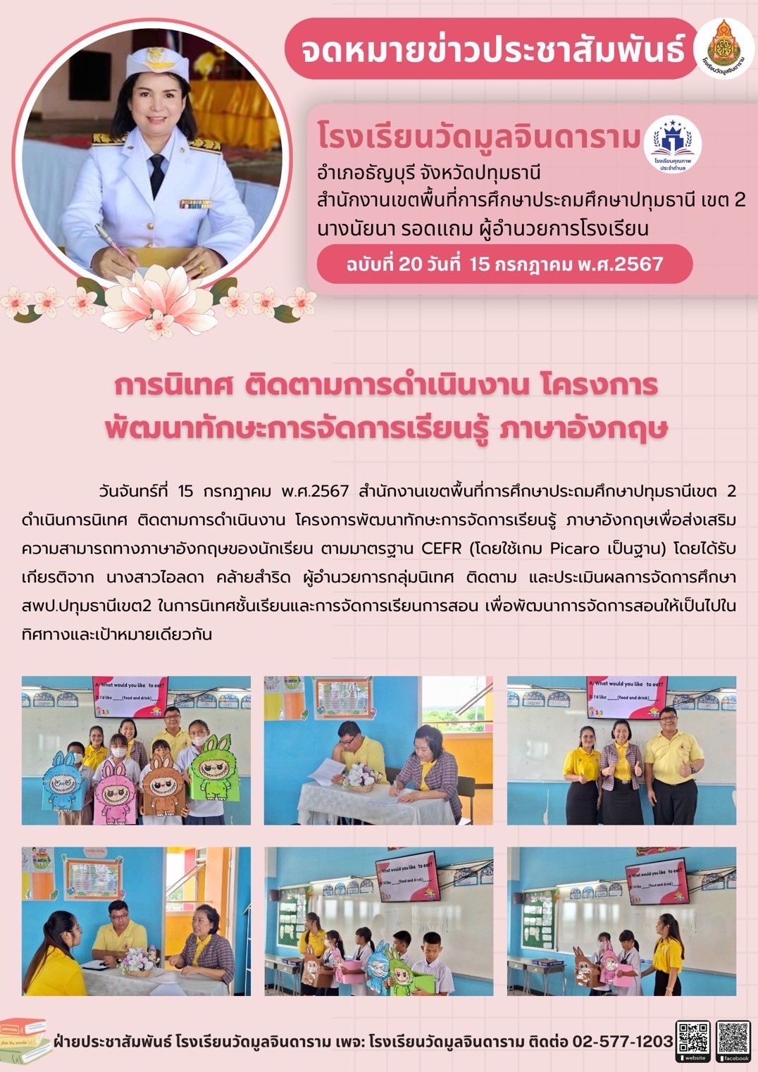 การนิเทศ ติดตามการดำเนินงาน โครงการพัฒนาทักษะการจัดการเรียนรู้ ภาษาอังกฤษ
