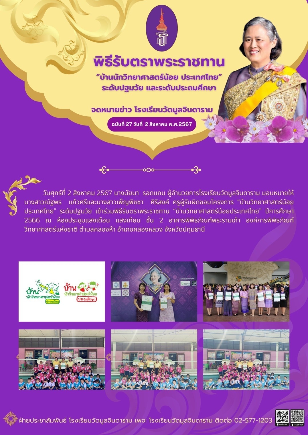 พิธีรับตราพระราชทาน "บ้านนักวิทยาศาสตร์น้อย ประเทศไทย" ระดับปฐมวัย และระดับประถมศึกษา
