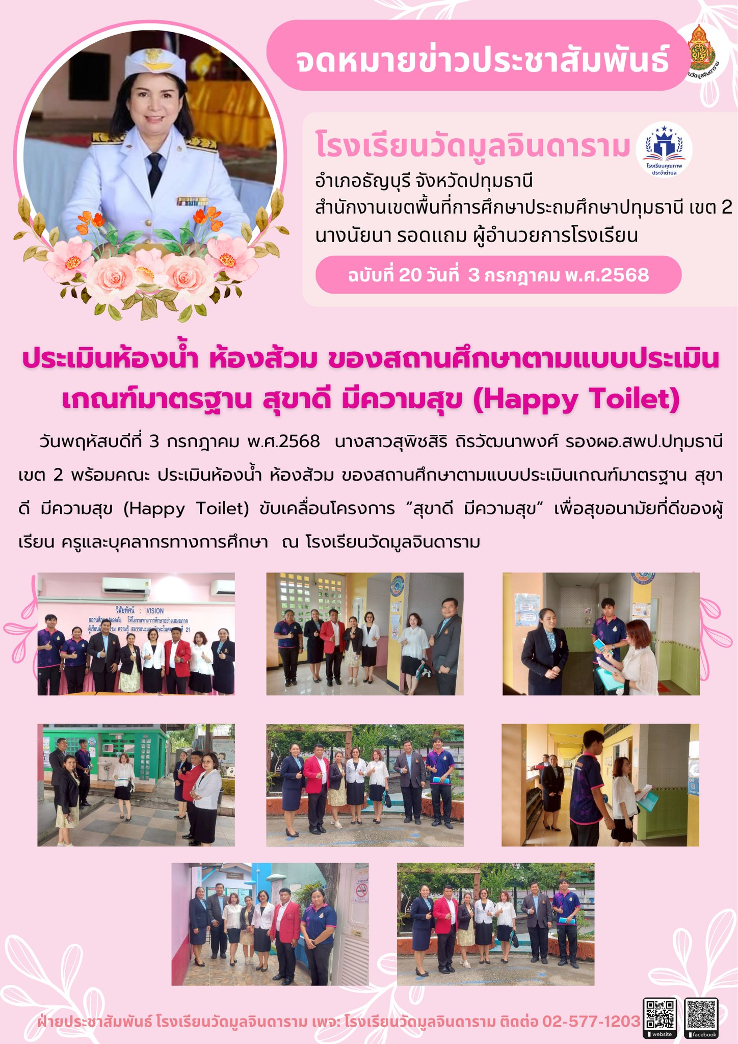 เรื่อง ประเมินห้องน้ำ ห้องส้วม ของสถานศึกษาตามแบบประเมินเกณฑ์มาตรฐาน สุขาดี มีความสุข (Happy Toilet)
