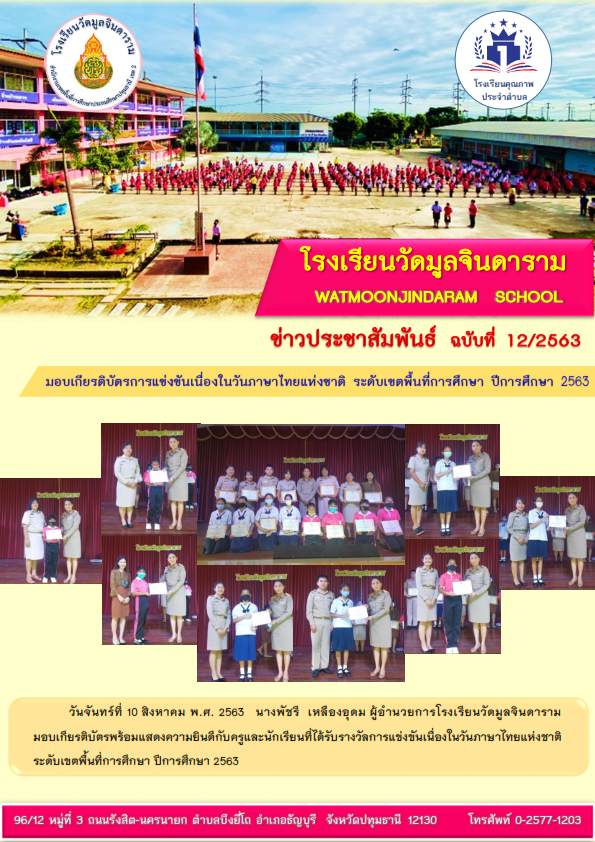 มอบเกียรติบัตรการแข่งขันเนื่องในวันภาษาไทยแห่งชาติ ระดับเขตพื้นที่การศึกษา ปีการศึกษา 2563