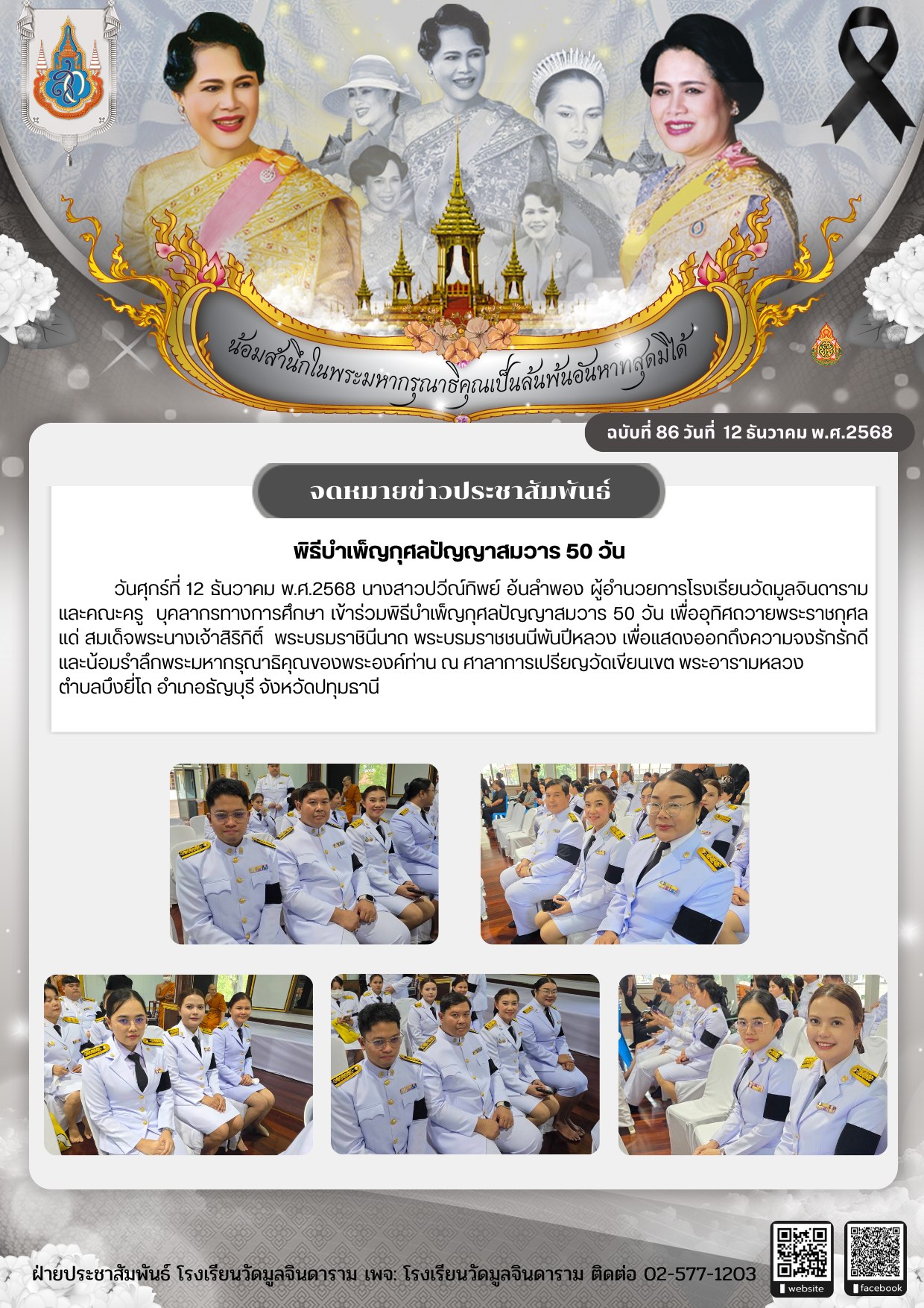 ร่วมพิธีบำเพ็ญกุศลปัญญาสมวาร 50 วัน เพื่ออุทิศถวายพระราชกุศลแด่ สมเด็จพระนางเจ้าสิริกิติ์ พระบรมราชินีนาถ พระบรมราชชนนีพันปีหลวง