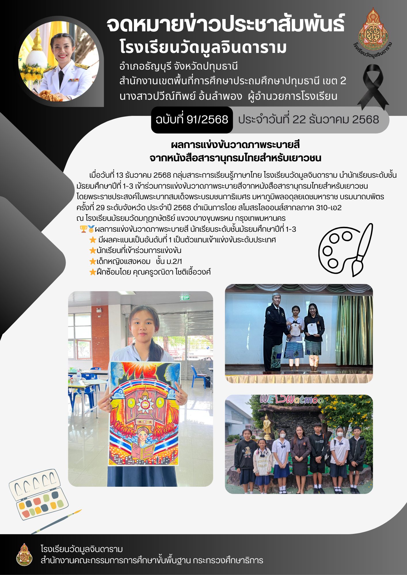 เข้าร่วมการแข่งขันวาดภาพระบายสีจากหนังสือสารานุกรมไทยสำหรับเยาวชน โดยพระราชประสงค์ในพระบาทสมเด็จพระบรมชนกาธิเบศร มหาภูมิพลอดุลยเดชมหาราช บรมนาถบพิตร ครั้งที่ 29 ระดับจังหวัด ประจำปี 2568