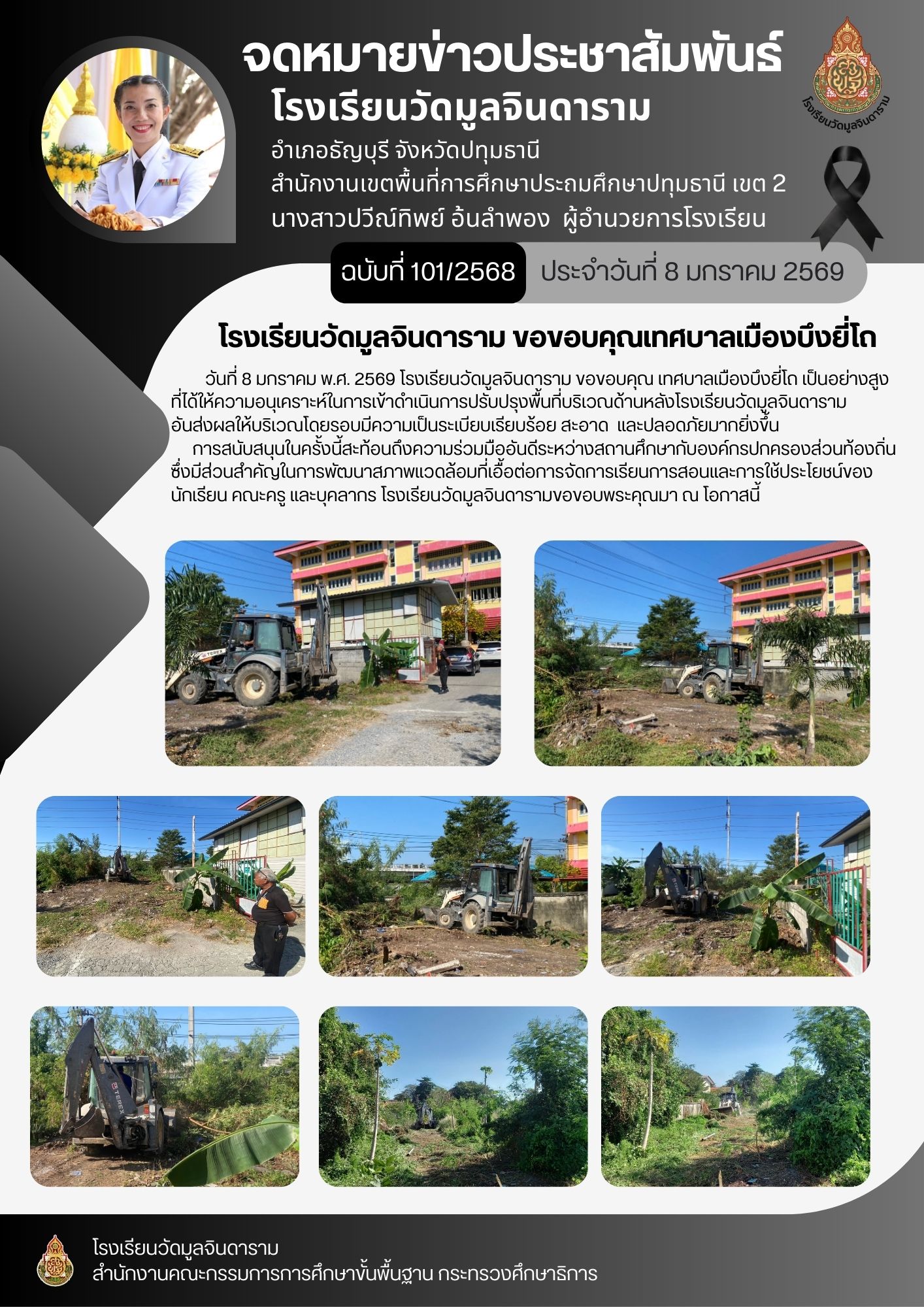 ารเข้าดำเนินการปรับปรุงพื้นที่บริเวณด้านหลังโรงเรียนวัดมูลจินดาราม อันส่งผลให้บริเวณโดยรอบมีความเป็นระเบียบเรียบร้อย สะอาด และปลอดภัยมากยิ่งขึ้น