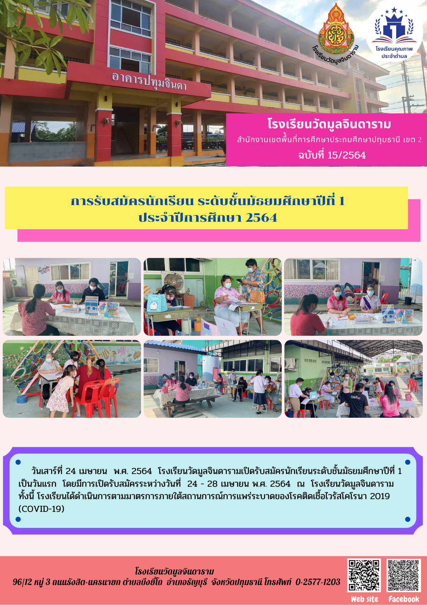 การรับสมัครนักเรียน ระดับชั้นมัธยมศึกษาปีที่ 1 ปีการศึกษา 2564