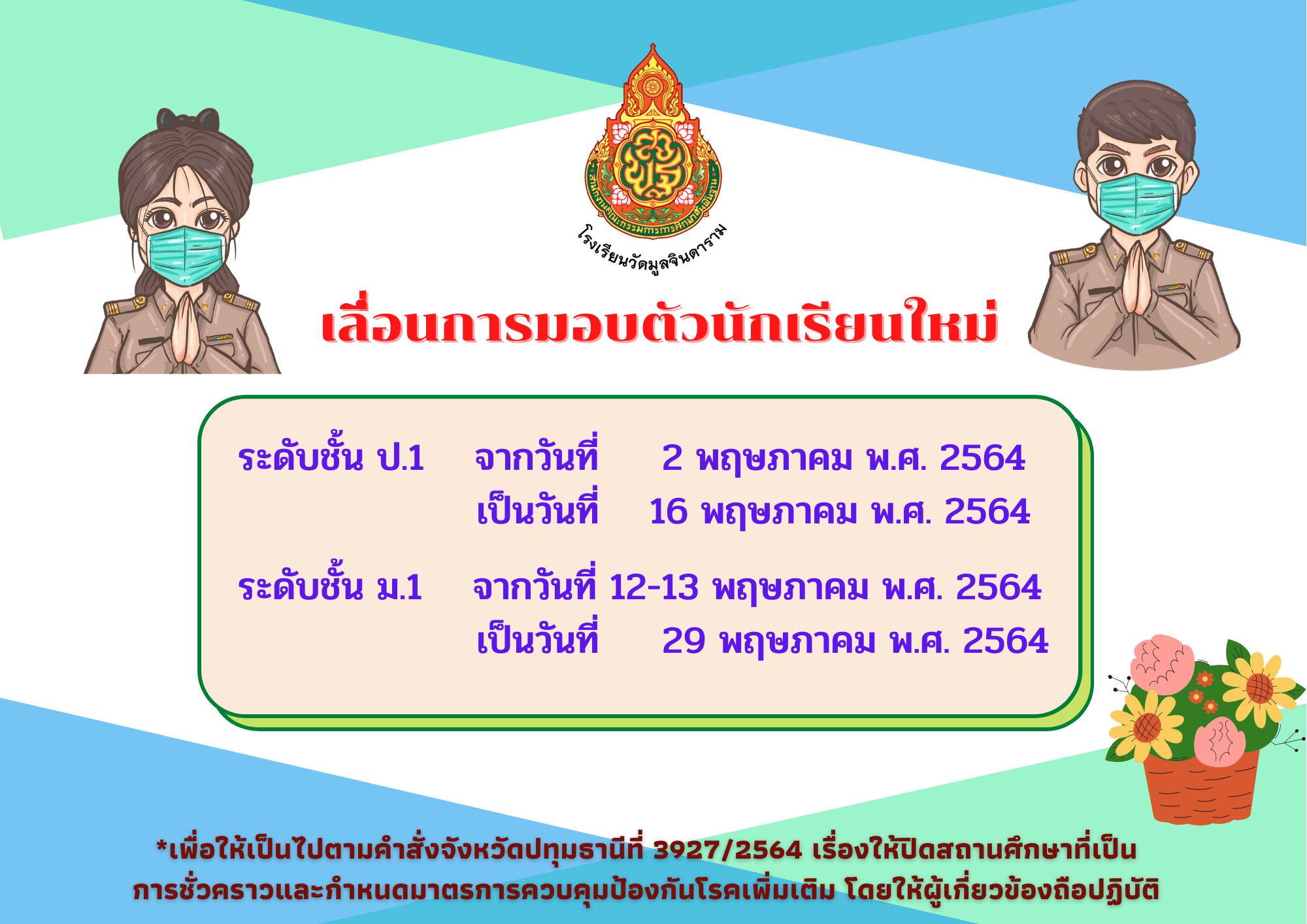 เล่ื่อนการมอบตัวนักเรียนใหม่ ประจำปีการศึกษา 2564