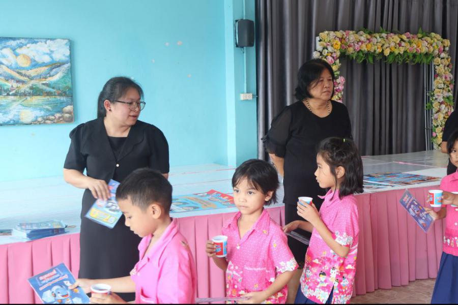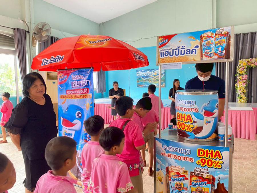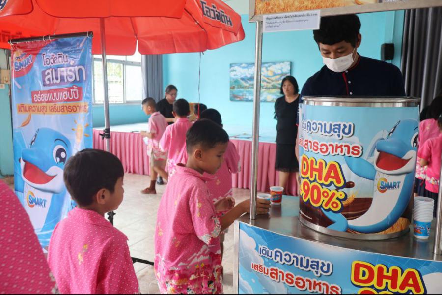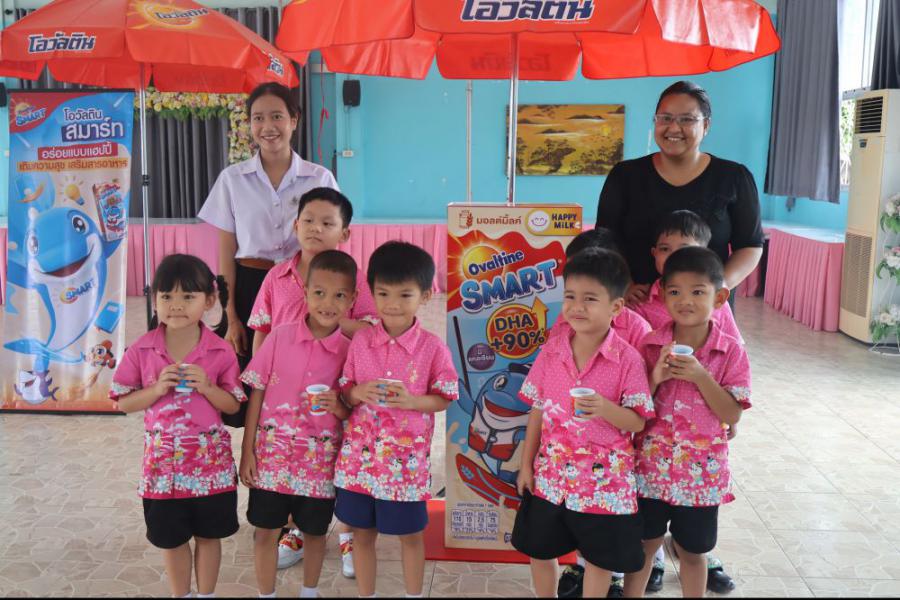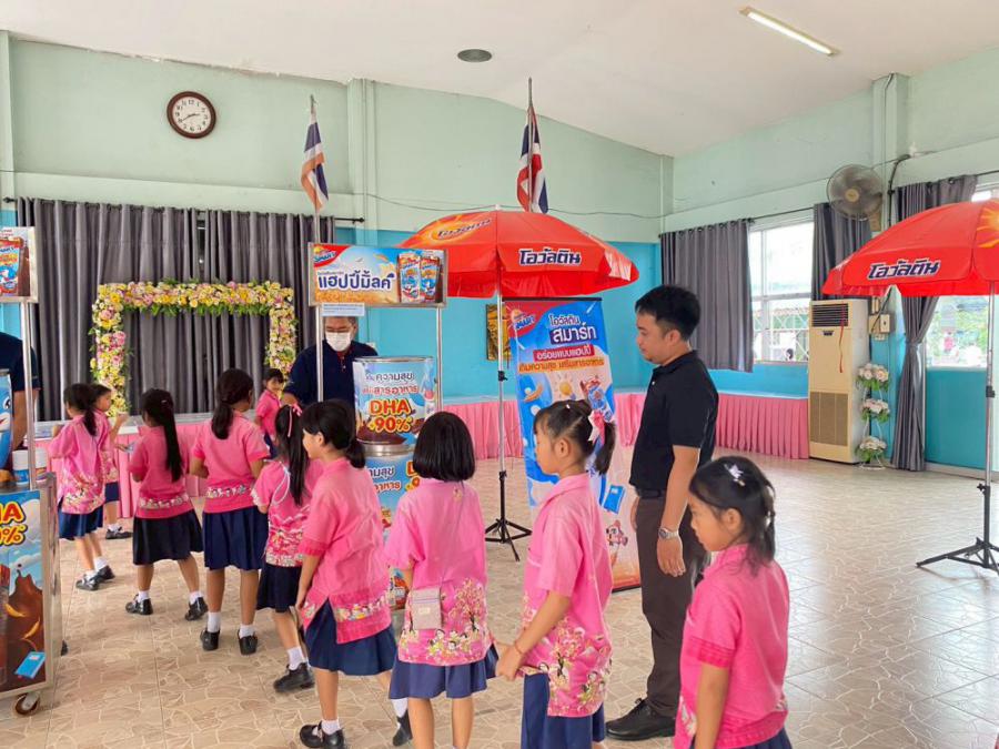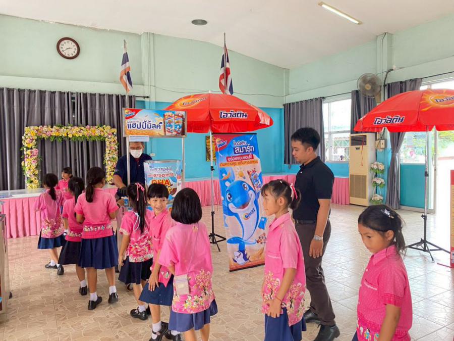 บริษัท เอฟ แอนด์ เอ็น แดรี่ส์ (ประเทศไทย) จำกัด ได้ให้เกียรติเดินทางมามอบ เครื่องดื่มนมยูเอชทีรสช็อกโกแลต สูตรผสมดีเอชเอ ปรุงสำเร็จ ตราโอวัลตินสมาร์ท ให้แก่นักเรียนทุกคน