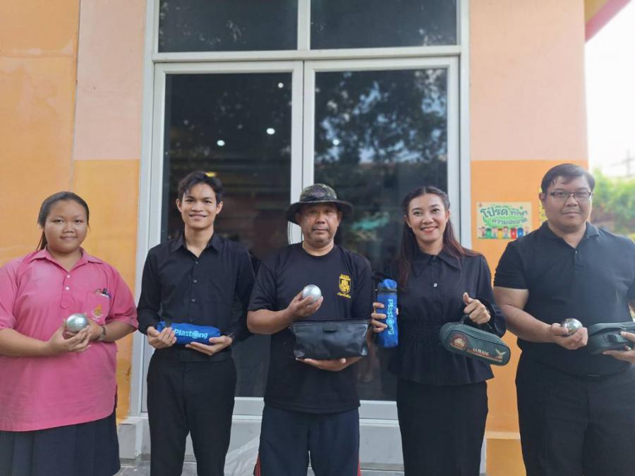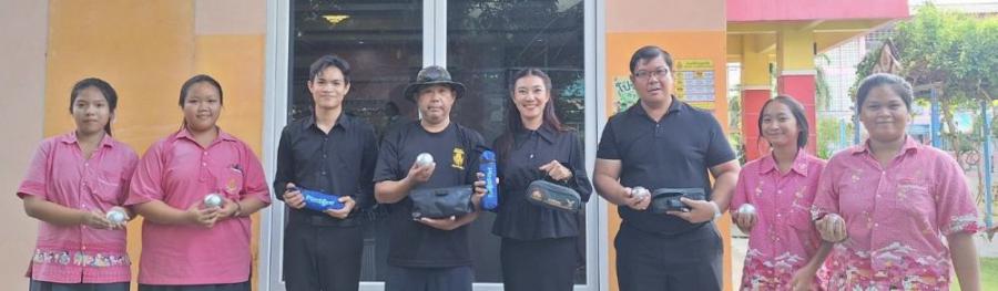 รับมอบอุปกรณ์กีฬา (ลูกเปตอง) จากคุณสถาพร ชาวบางพระ กรรมการสถานศึกษาโรงเรียนวัดมูลจินดาราม