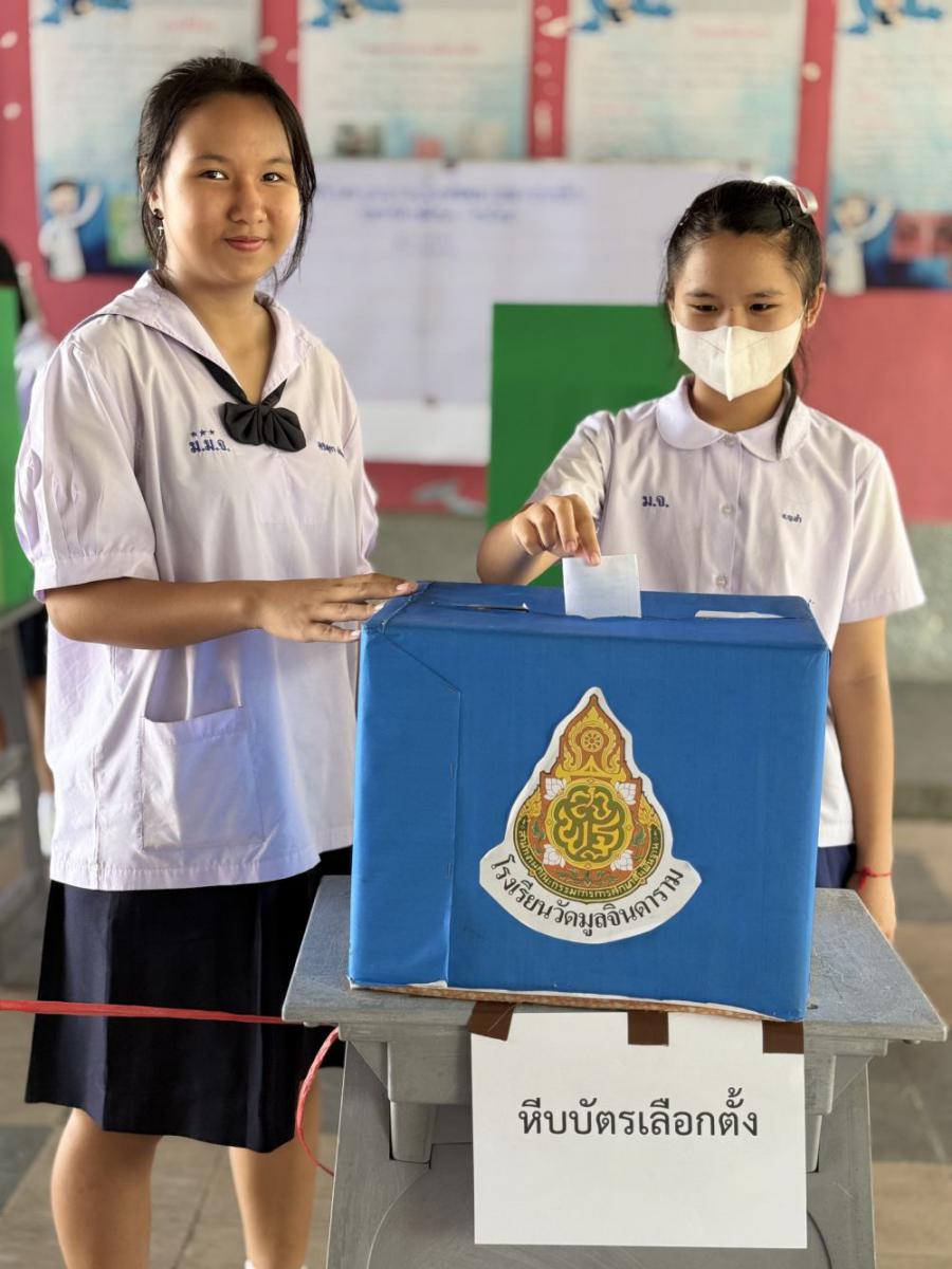 วันจันทร์ที่ 24 กุมภาพันธ์ พ.ศ. 2569 โรงเรียนวัดมูลจินดาราม นำโดยนางสาวปวีณ์ทิพย์ อ้นลำพอง ผู้อำนวยการโรงเรียน พร้อมด้วยนายพันศักดิ์ เสริฐศิริกุล และนางสาวจารวีย์ วงศ์เลิศฉัตร รองผู้อำนวยการโรงเรียน ครู บุคลากรทางการศึกษา และนักเรียนระดับชั้นประถมศึกษาปีที่ 1 ถึงชั้นมัธยมศึกษาปีที่ 3 ร่วมกันใช้สิทธิ์เข้าคูหาเลือกตั้งสภานักเรียน ประจำปีการศึกษา 2569 ผลการเลือกตั้งปรากฏว่า หมายเลข 1 พรรค NEW WAVE ได้รับความไว้วางใจจากนักเรียนให้เป็นคณะกรรมการสภานักเรียนชุดใหม่ กิจกรรมดังกล่าวจัดขึ้นเพื่อส่งเสริมการเรียนรู้ตามวิถีประชาธิปไตย ปลูกฝังความรับผิดชอบ การมีส่วนร่วม และการเคารพสิทธิของผู้อื่น โดยบรรยากาศเป็นไปอย่างคึกคัก นักเรียนให้ความสนใจ เข้าร่วมใช้สิทธิ์อย่างพร้อมเพรียง และมีการจัดหน่วยเลือกตั้งอย่างเป็นระบบ โปร่งใส และเรียบร้อย S:0