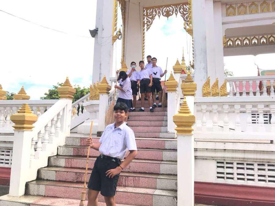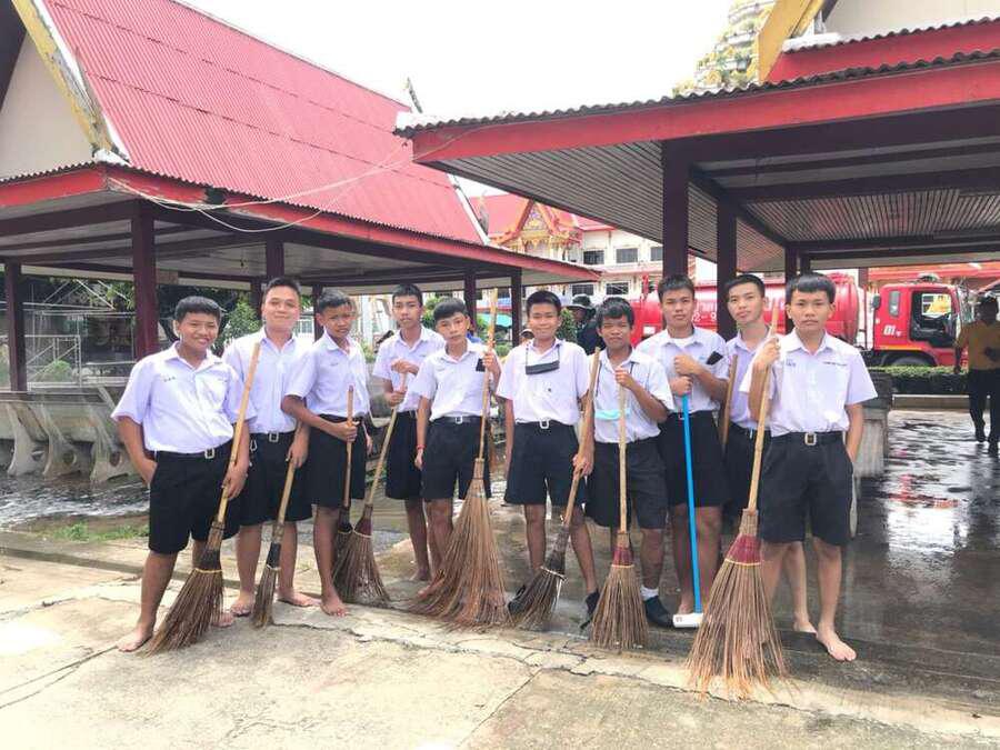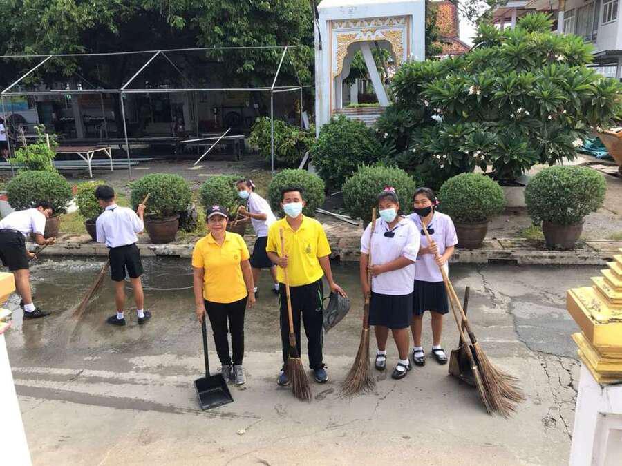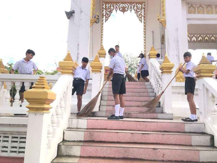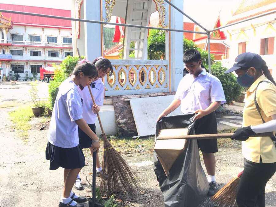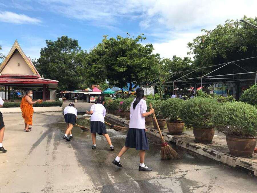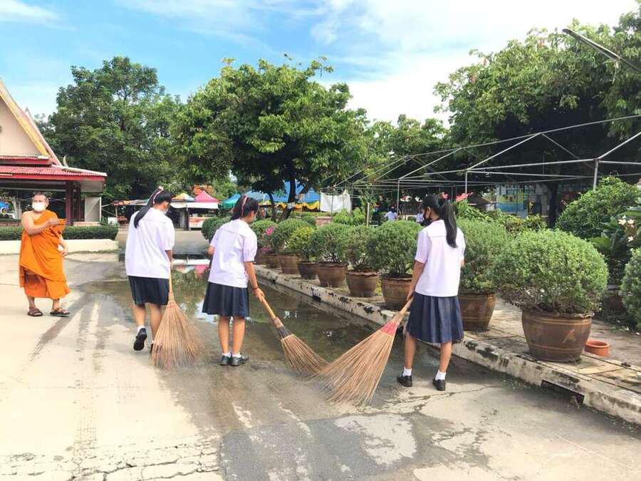 นักเรียนจิตอาสาทำความสะอาดวัดมูลจินดาราม