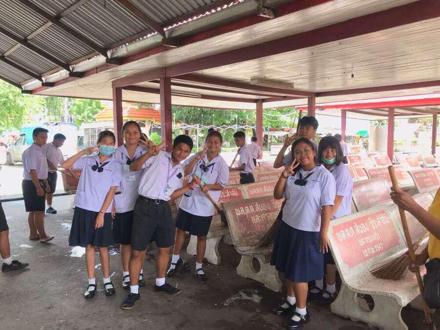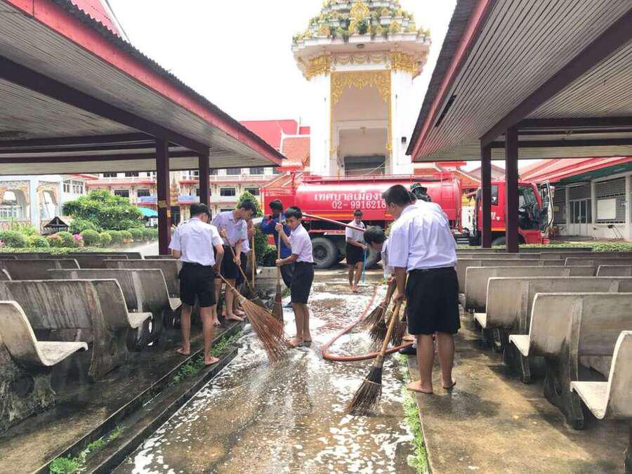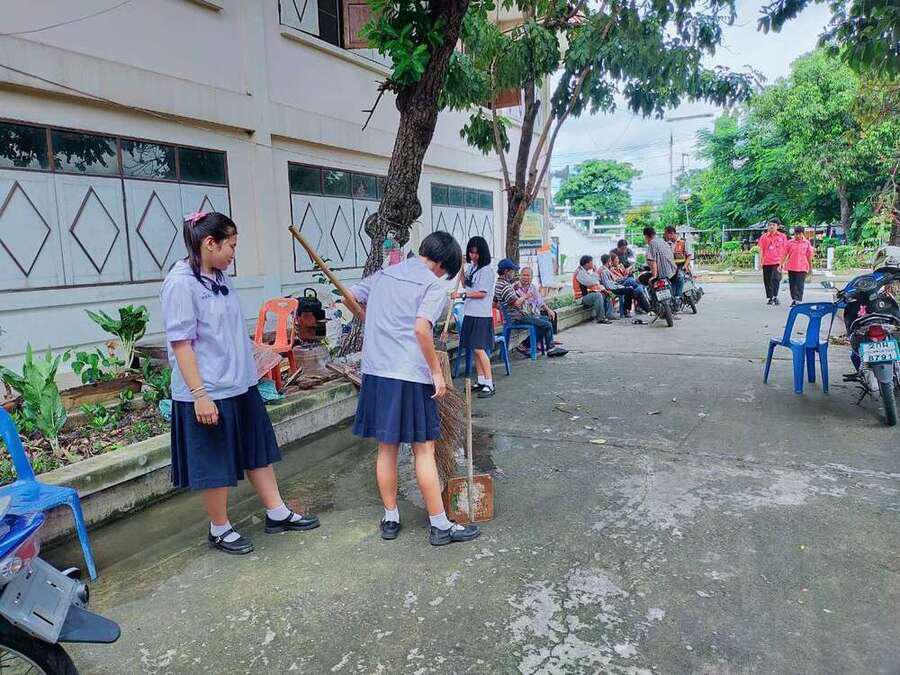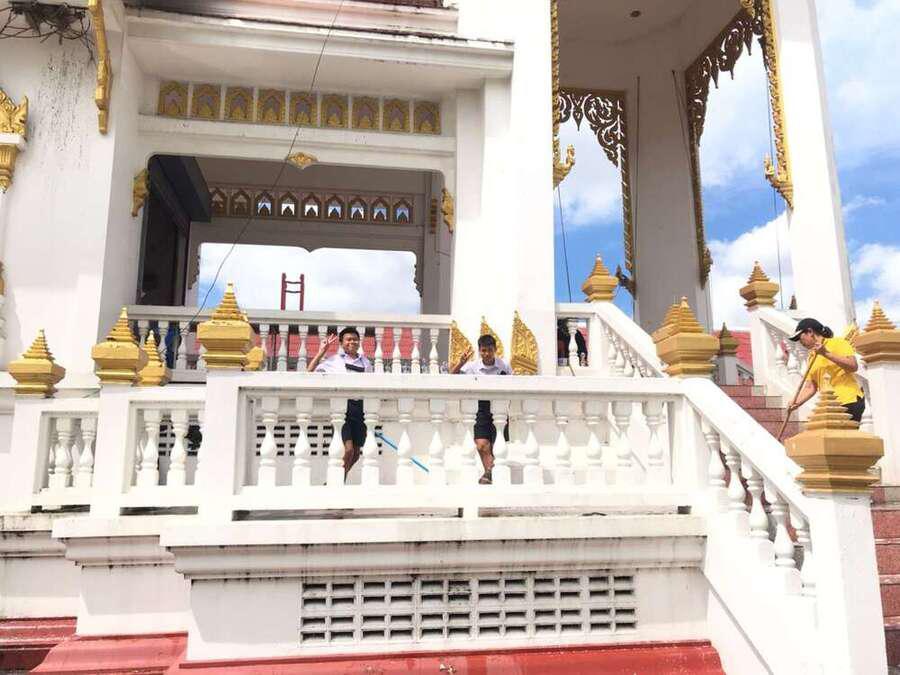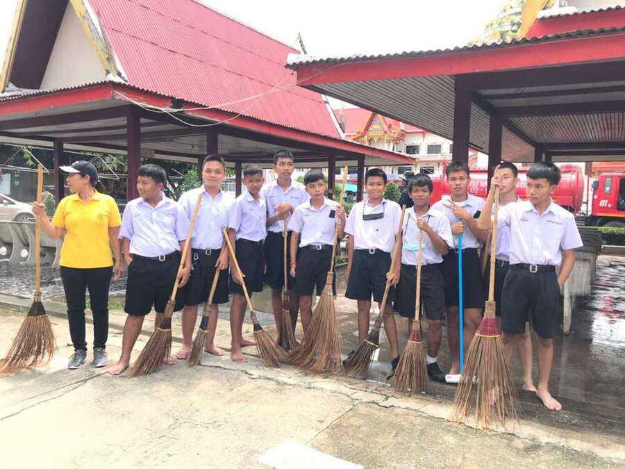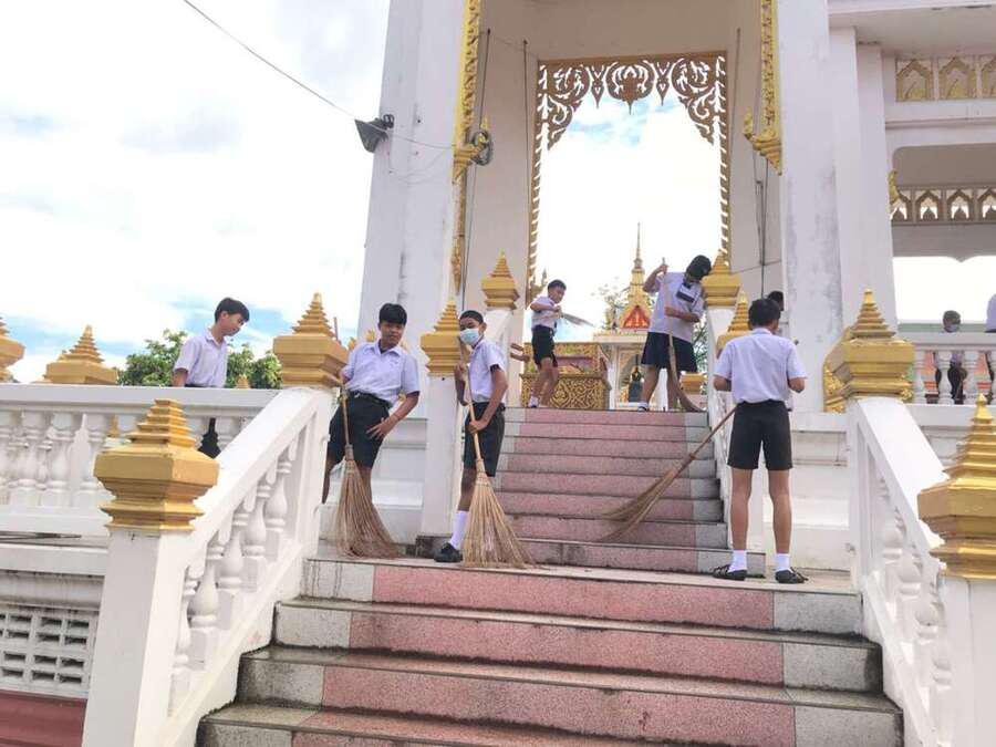 นักเรียนจิตอาสาทำความสะอาดวัดมูลจินดาราม