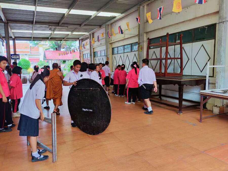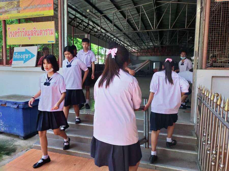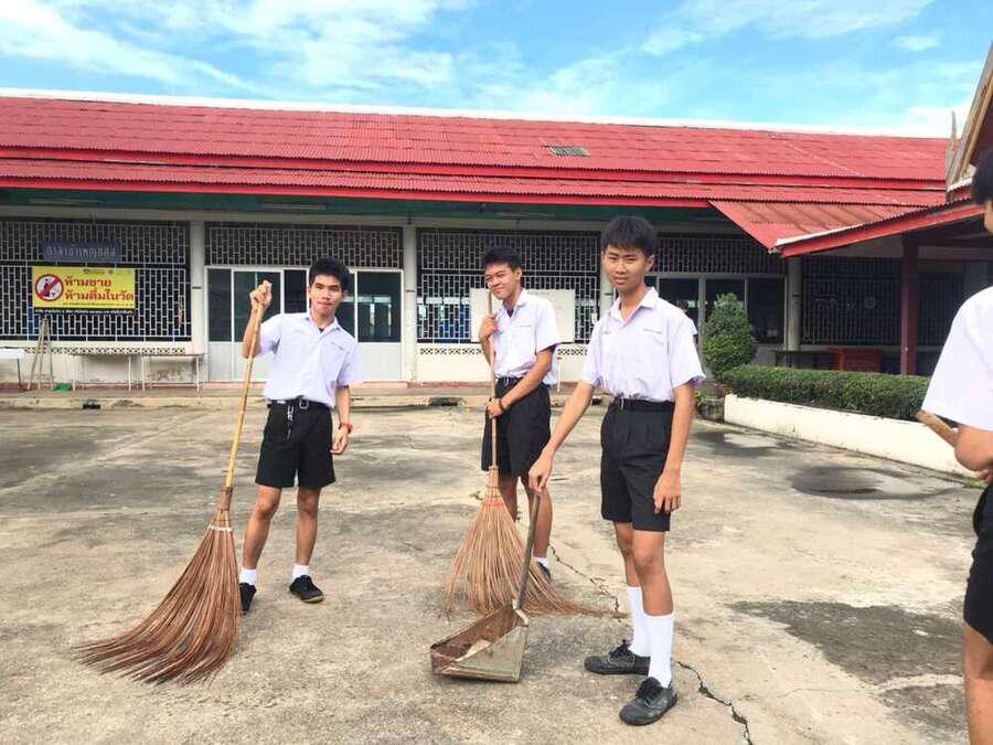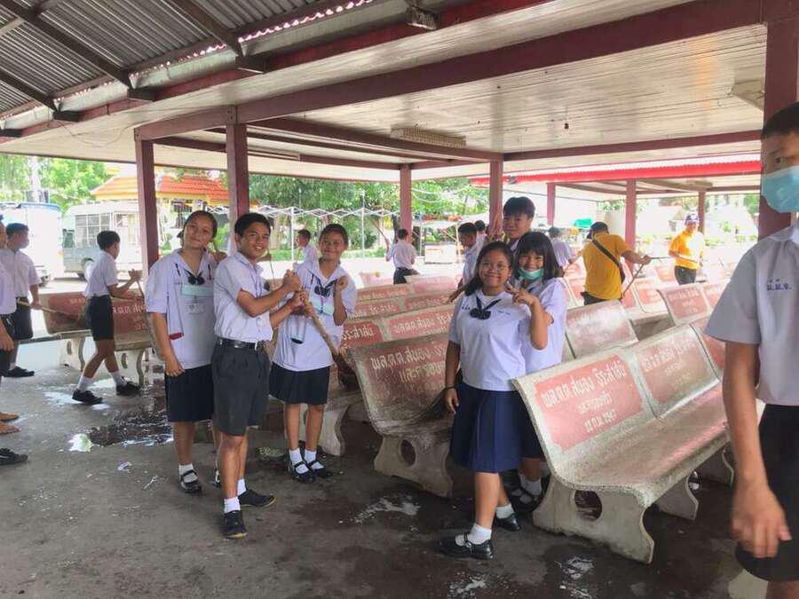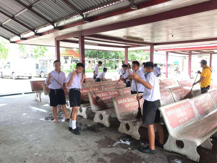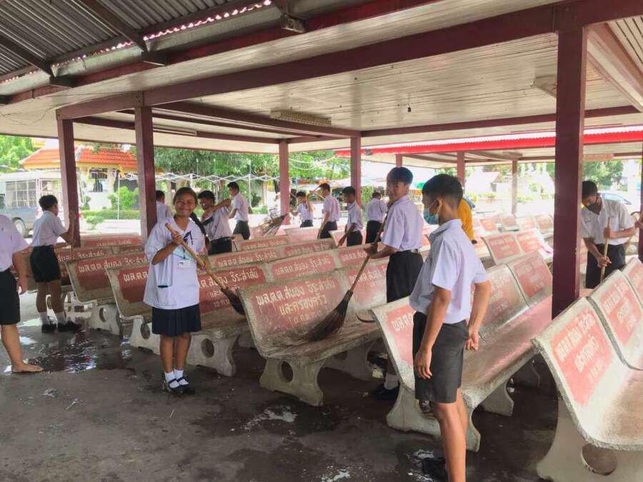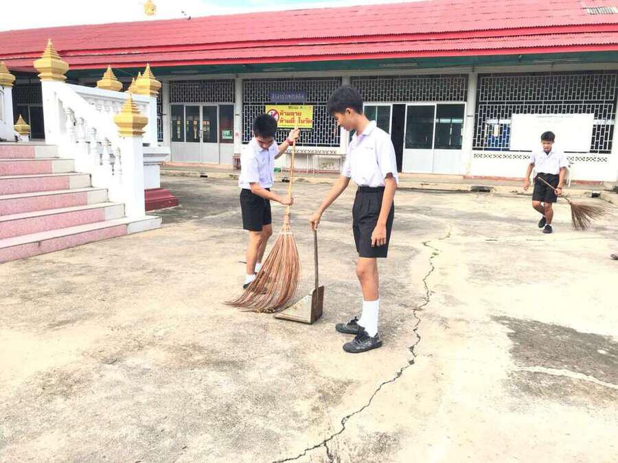 นักเรียนจิตอาสาทำความสะอาดวัดมูลจินดาราม
