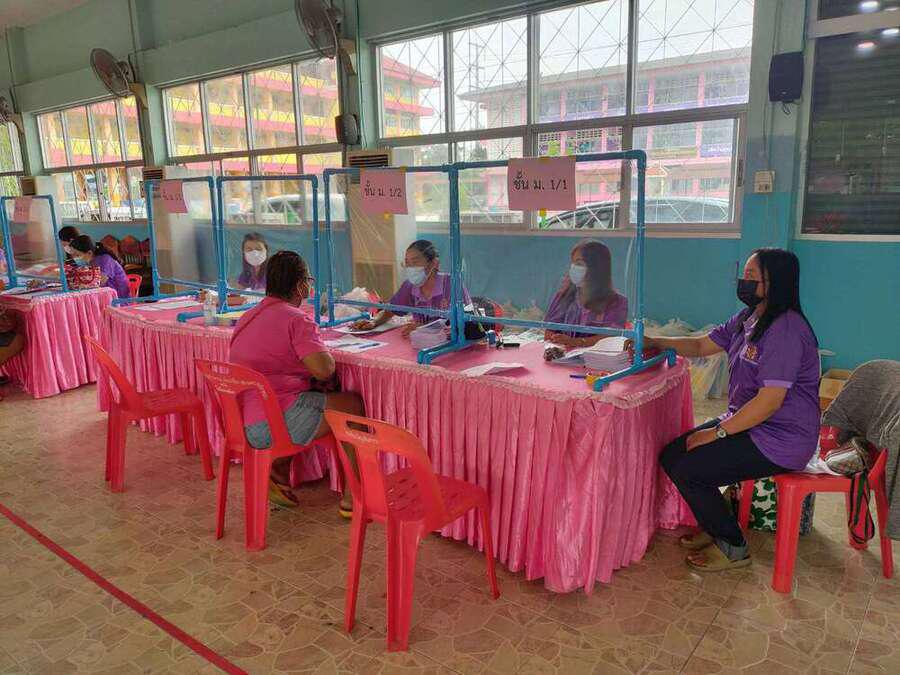 วันที่ 24-29 พฤษภาคม พ.ศ. 2564 นางพัชรี เหลืองอุดม ผู้อำนวยการโรงเรียนวัดมูลจินดาราม พร้อมด้วย คณะครูโรงเรียนวัดมูลจินดาราม ดำเนินการมอบเงินอุดหนุนค่าเครื่องแบบ นักเรียน อุปกรณ์การเรียนและหนังสือเรียนให้กับนักเรียนและผู้ปกครอง โดยปฏิบัติตามมาตรการภายใต้ สถานการณ์การแพร่ระบาดของ โรคติดเชื้อไวรัสโคโรนา 2019 (COVID-19) ณ หอประชุมโรงเรียน วัดมูลจินดาราม S:0