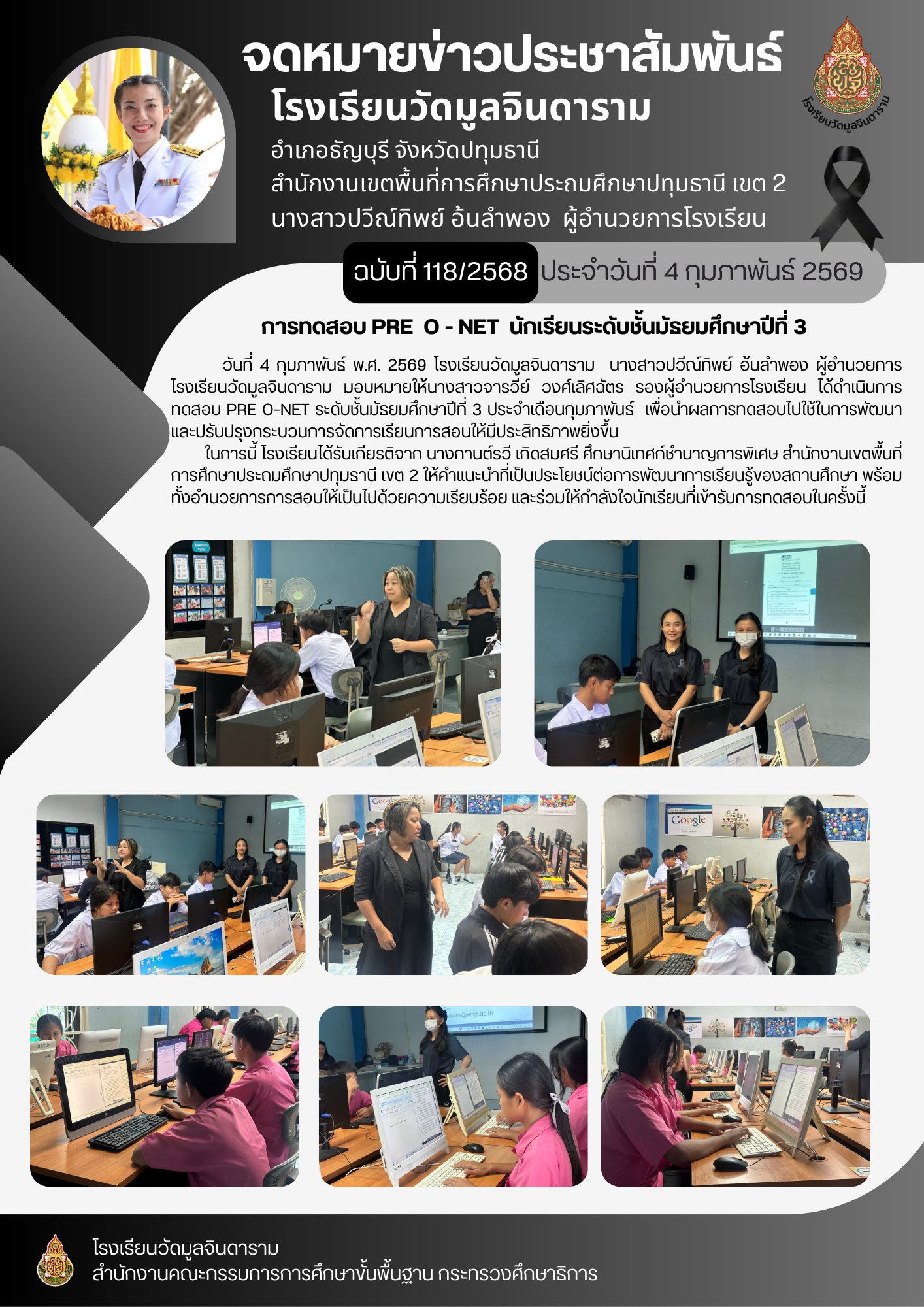 ดำเนินการทดสอบ PRE O-NET ระดับชั้นมัธยมศึกษาปีที่ 3 ประจำเดือนกุมภาพันธ์