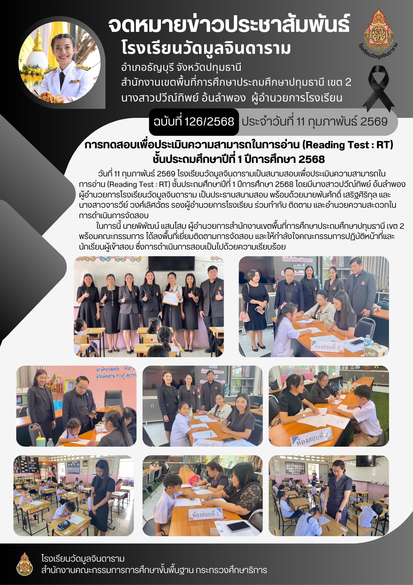 ประเมินความสามารถในการอ่าน (Reading Test : RT) ชั้นประถมศึกษาปีที่ 1 ปีการศึกษา 2568