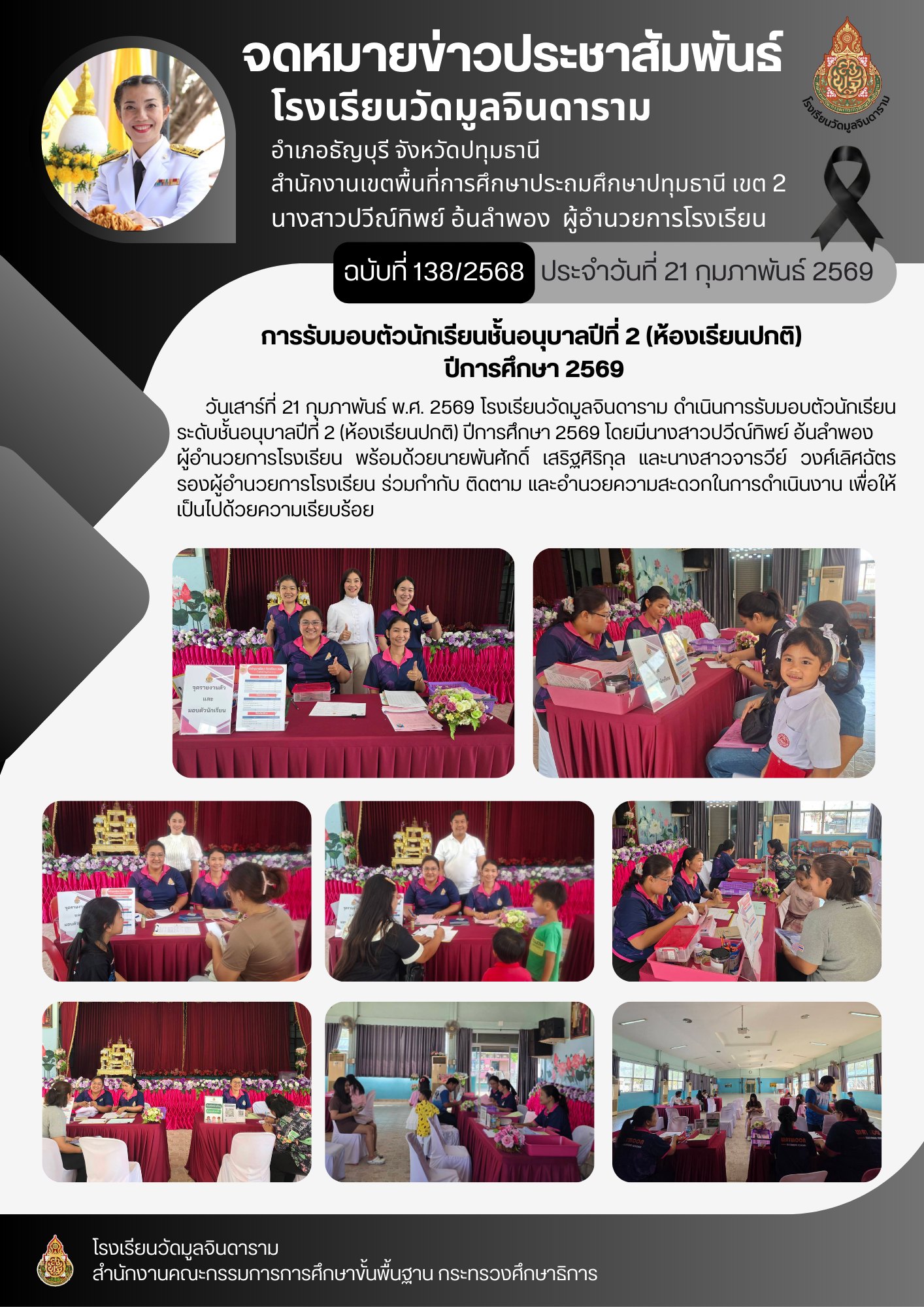 การรับมอบตัวนักเรียนระดับชั้นอนุบาลปีที่ 2 (ห้องเรียนปกติ) ปีการศึกษา 2569