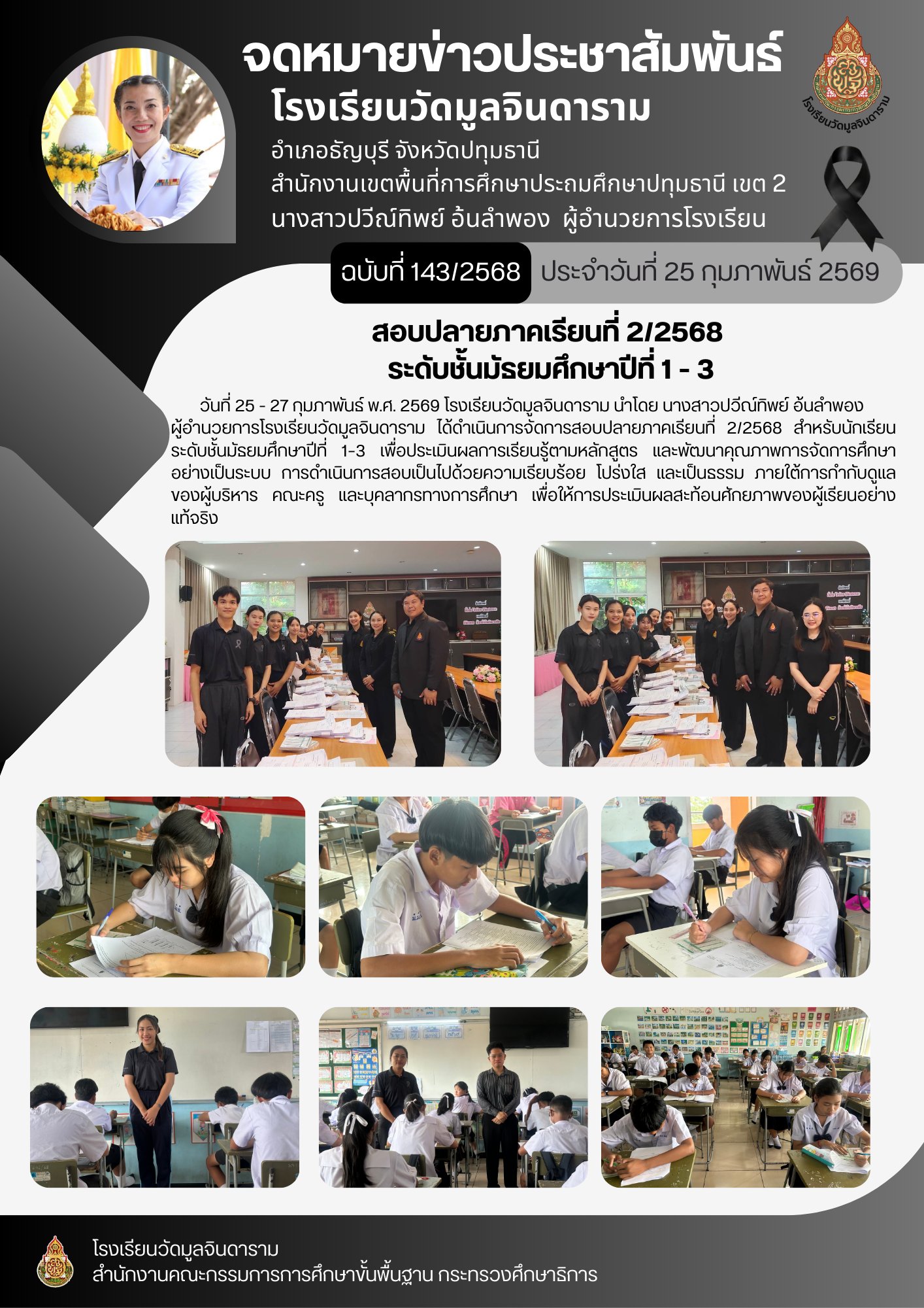 การจัดการสอบปลายภาคเรียนที่ 2/2568 สำหรับนักเรียนระดับชั้นมัธยมศึกษาปีที่ 1?3